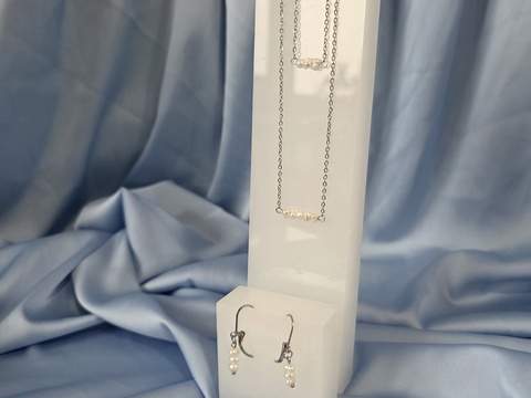 Set lanț, brățară și cercei din oțel inoxidabil și perlă de cultură.