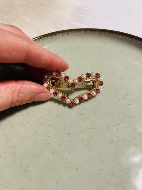 Agrafă elegantă pentru păr – Inimă cu pietre strălucitoare și mărgele