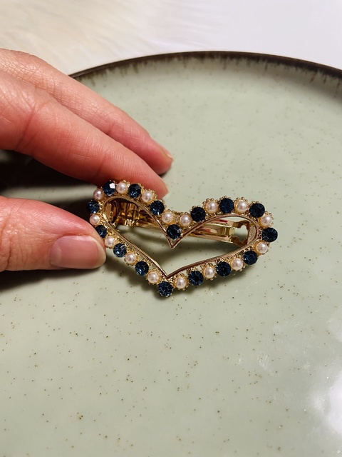 Agrafă elegantă pentru păr – Inimă cu pietre strălucitoare și mărgele