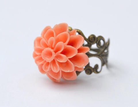- Material: baza inel bronz reglabila, camee floare crizantema din acril