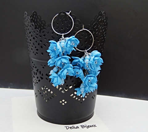 Cercei handmade, lungi cu flori bleu (cod1391)