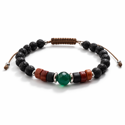 Bratara barbati din jad verde, ceramica si margele negre din roca vulcanica