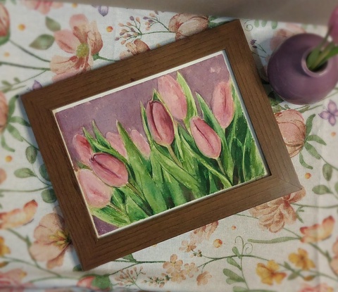 Tablou lalele in acuarelă