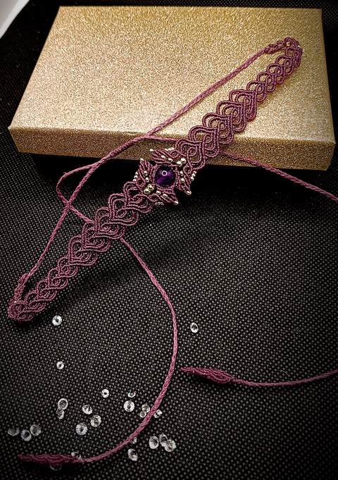 Choker Mov Micromacrame Ametist