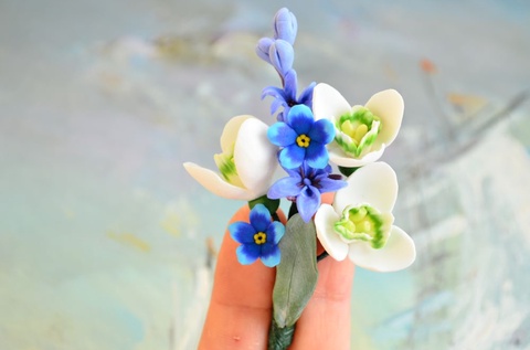 Ghiocei, viorele si nu ma uita- Brosa buchet
