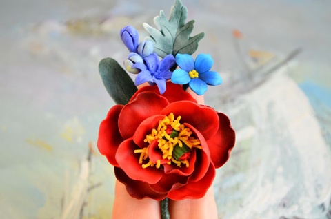 Bujor romanesc, nu ma uita si viorele- Brosa mare