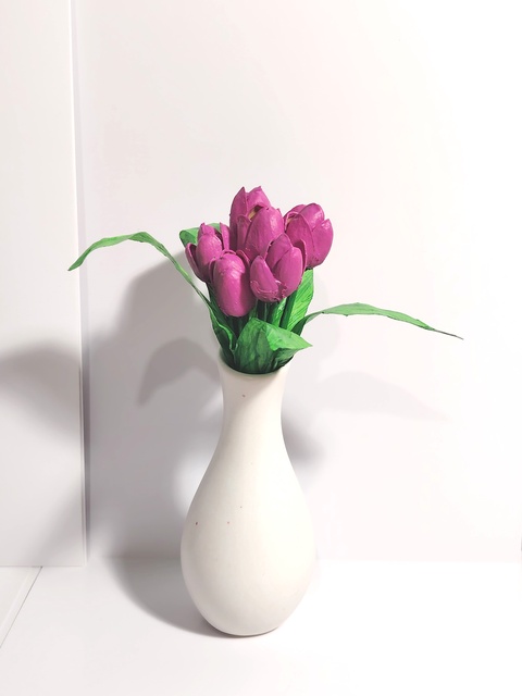 Aranjament handmade cu lalele din coji de fistic în vază. -Mic -
