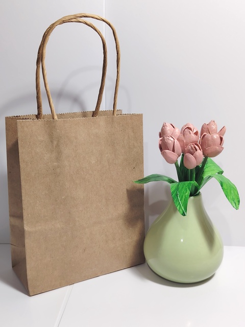 Aranjament handmade cu lalele din coji de fistic în vază. -Mic -