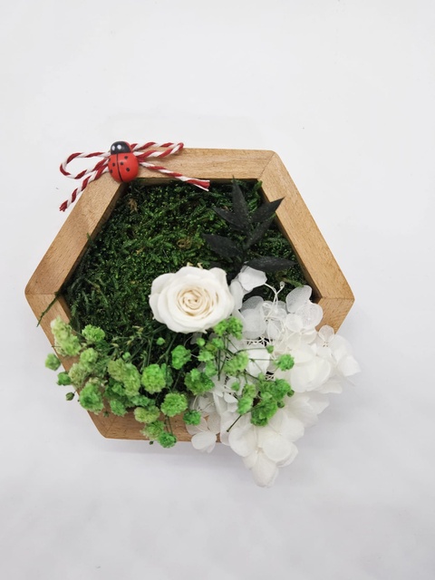 Martisor hexagon cu trandafir criogenat