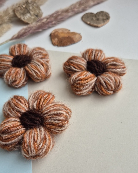 Mărțișor Handmade Tip Broșă – Flower Power Ruginiu și Ciocolată