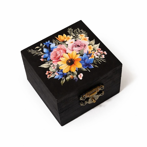 Cutie lemn patrata buchet de flori multicolor 200702