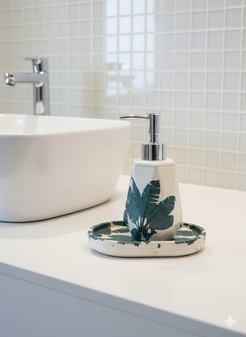 Set dispenser sapun cu tavita de protectie, model natural