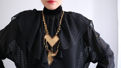 Colier statement auriu din piele naturală și mărgele din sticla