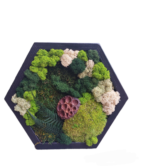 Tablou Hexagonal, cu licheni si muschi stabilizati, 32x27 cm