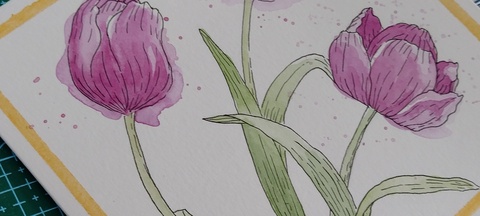 Felicitare pictata manual cu lalele