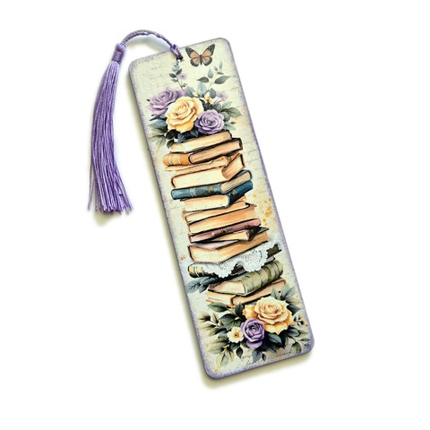 Semn de carte lemn carti si flori - 102926