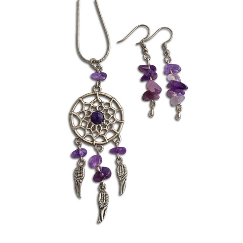 Set bijuterii colier si cercei cu dreamcatcher si ametist 115813
