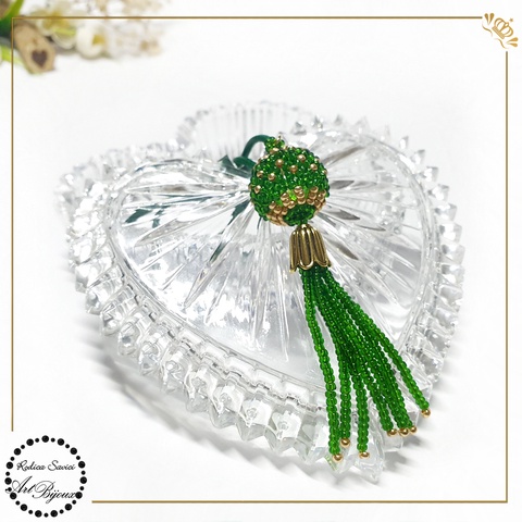 PANDANTIV BILUȚĂ CU FRANJURI verde cu auriu