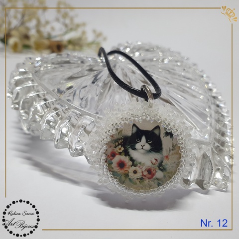 PANDANTIV pisici alb cu negru - Nr.12