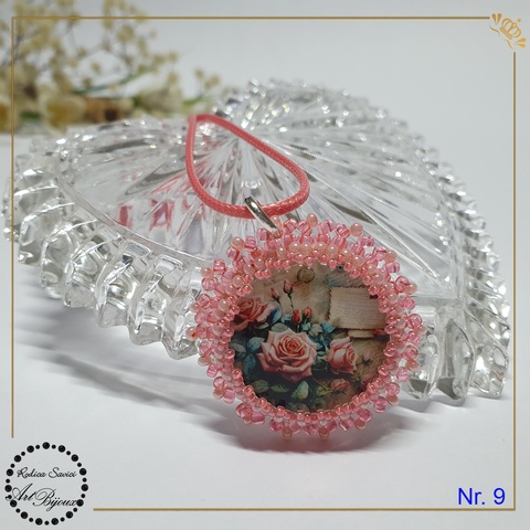 PANDANTIV trandafiri cu margine roz - Nr.9