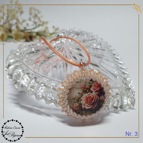 PANDANTIV trandafiri cu margine roz-piersică - Nr.3