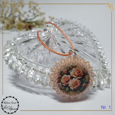 PANDANTIV trandafiri cu margine roz-piersică - Nr.1