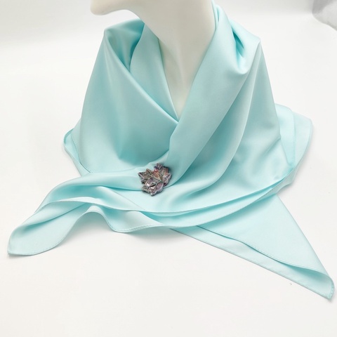 Set cadou esarfa satinata vernil deschis si brosa ceramica frunza, 4624