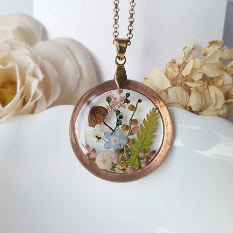 Colier handmade Pandantiv rasina buchet flori naturale Pandantiv terarium cadou inedit pandantiv ocazie