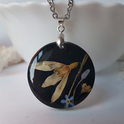 Colier unicat handmade Pandantiv flori naturale primavara Pandantiv ghiocel si albastre medalion botanic cadou Craciun