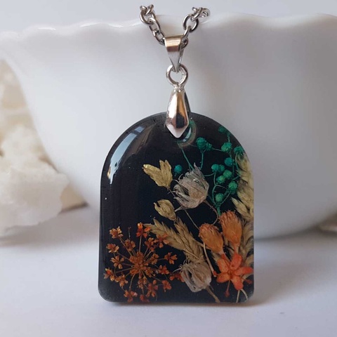Colier flori handmade Pandantiv vintage din rasina flori naturale buchet flori colier flori presat cadou femeie iubita