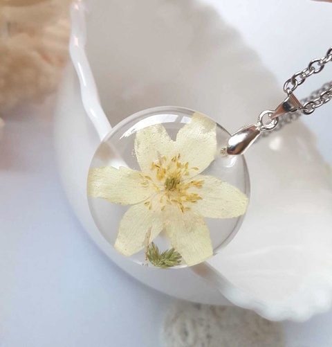 Colier flori handmade Pandantiv vintage din rasina flori naturale buchet flori colier flori presat cadou femeie iubita