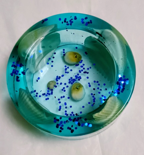 - Material/Conținut rășină epoxidica, scoici, sclipici