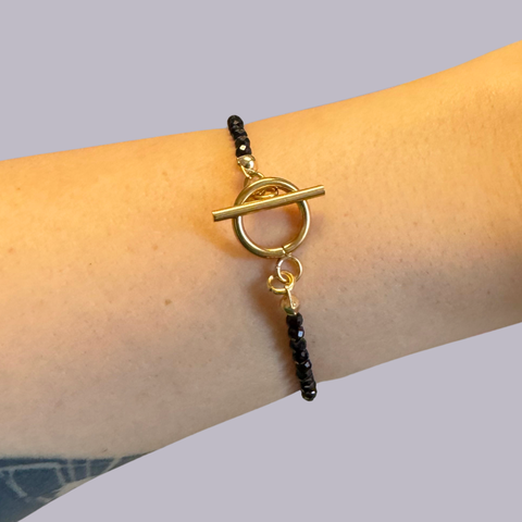 Bratara aurie din turmalina neagra si otel inoxidabil cu inchizatoare toggle