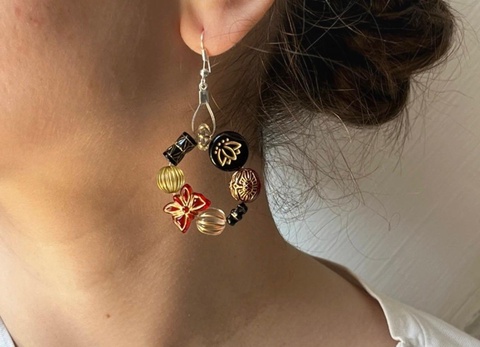 Cercei hoops Rhandmade din mărgele acrilice în relief în stil baroc.