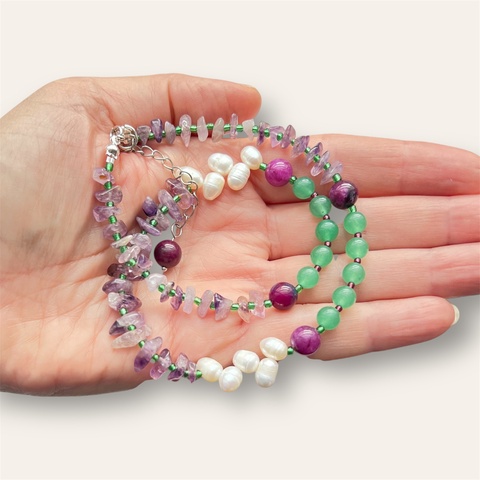 Colier handmade cu pietre semipretioase "Zori de primăvară"
