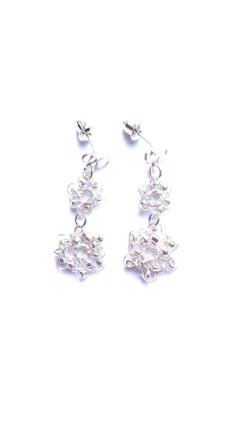 Cercei lungi floricele argintate cu margele de sticla argintii