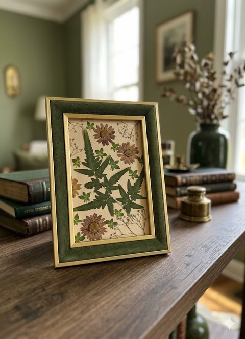 Tablou Botanic cu Flori Presate și Ramă din Catifea – Ediție Handmade 15x20 cm