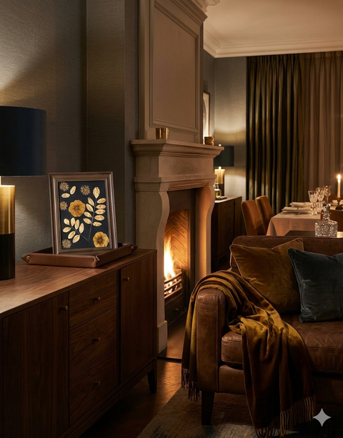 Tablou Botanic cu Flori Presate și Accente Aurii