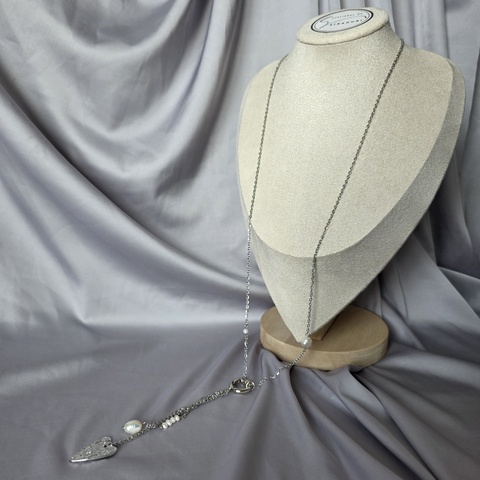 Colier lung din otel inoxidabil si perle de cultură