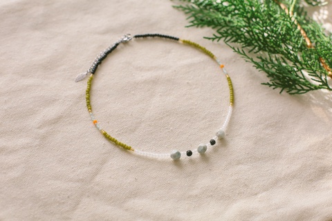 Colier din margele colorate la baza gatului