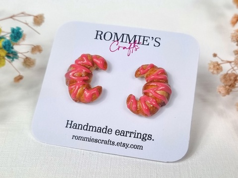 Cercei Handmade Croissant cu Căpșuni – Cercei Originali Cadou pentru Iubitoare de Dulciuri