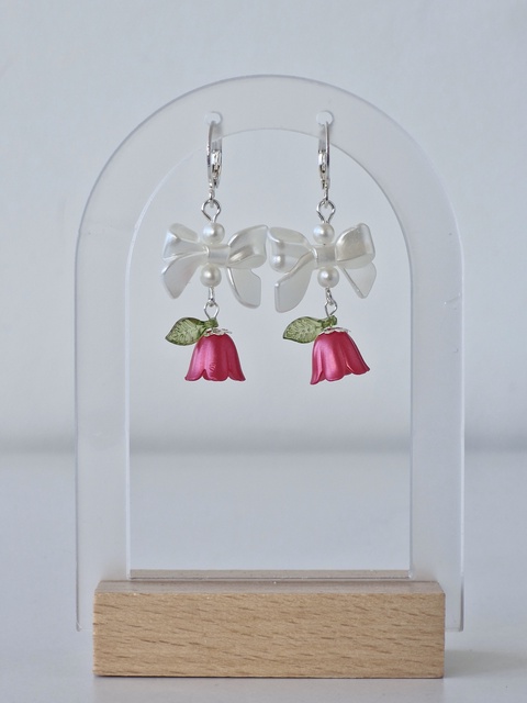 Cercei "Mărțișor" cu fundițe si lalele roșii