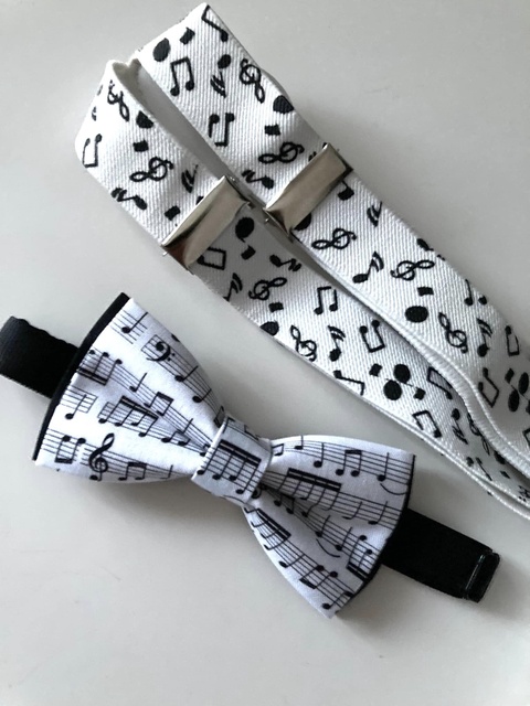 Set pentru copii, papion si bretele cu note muzicale