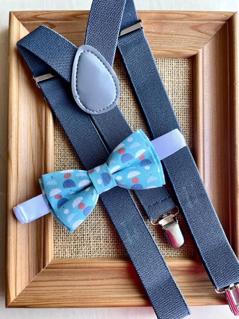 Set pentru copii, papion albastru si bretele gri