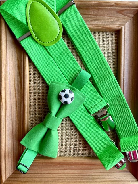 Set pentru copii, papion cu mingie de fotbal si bretele verzi