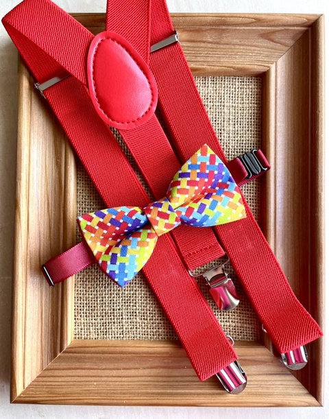 Set pentru copii, papion cucrubeu si bretele rosii