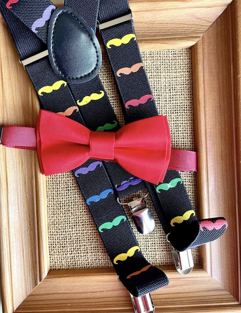 Set pentru copii, papion rosu si bretele cu mustati