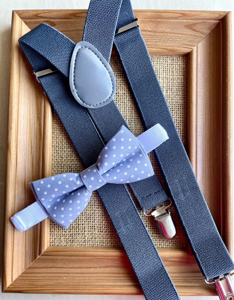 Set pentru copii, papion si bretele gri