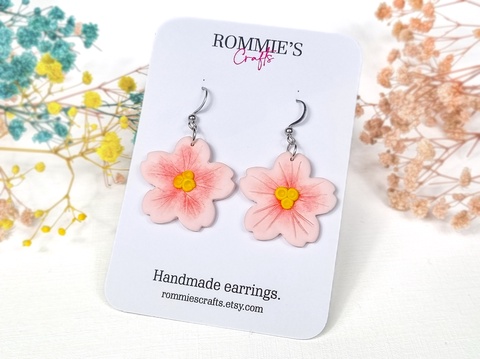 Cercei sakura handmade din lut polimeric, flori roz inspirate de ciresii japonezi