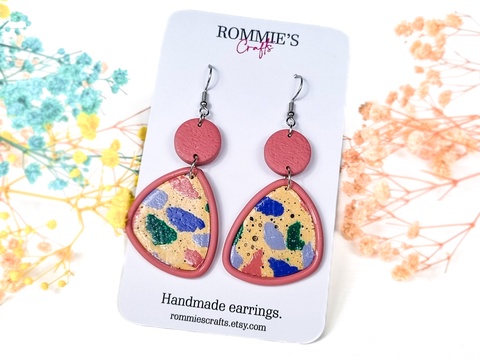 Cercei terrazzo handmade din lut polimeric, colorati, moderni